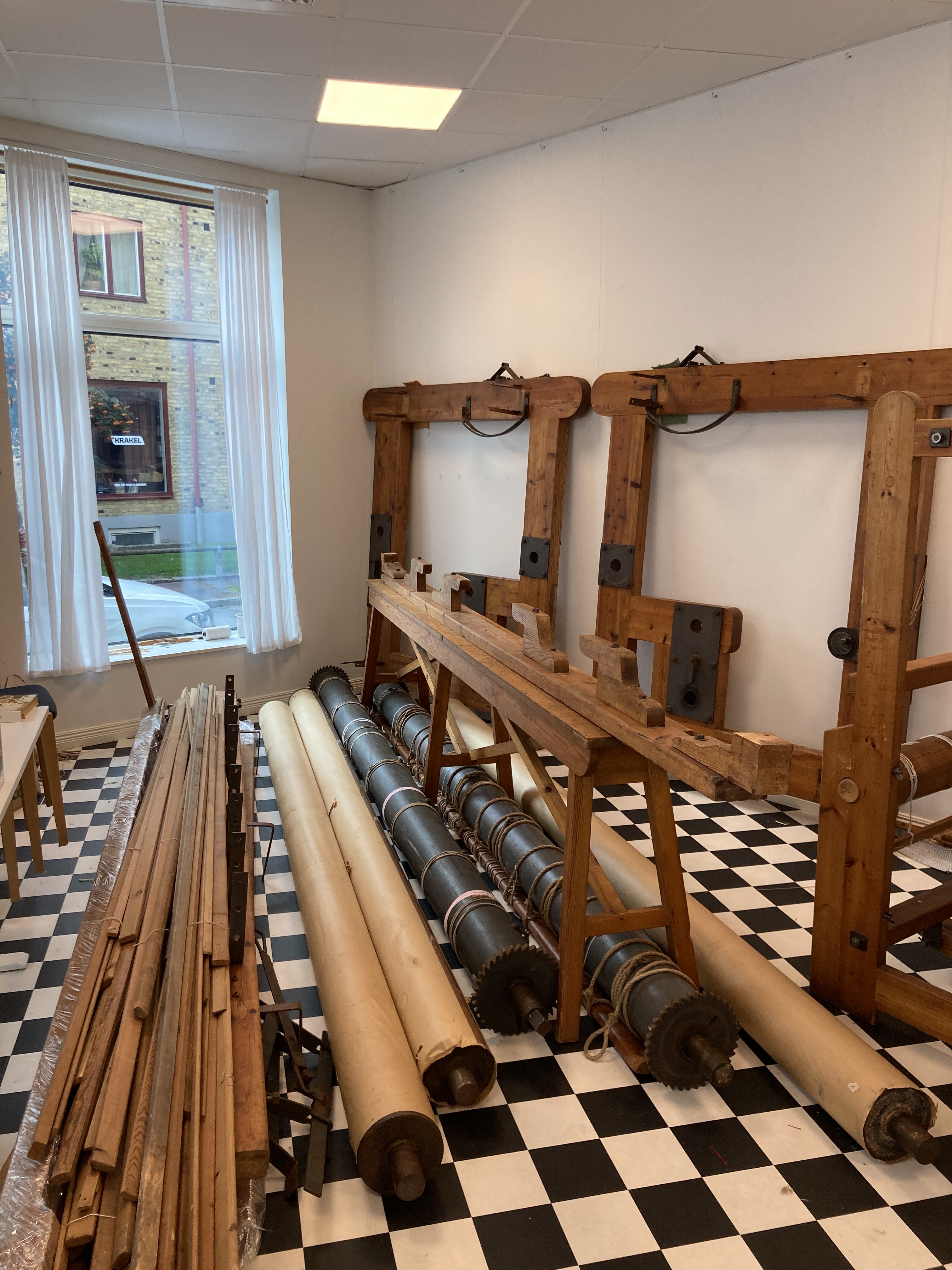 I höstas förvärvade Malmöväv en stor mattvävstol som flyttades från Jönköping och monterades upp med stor ansträngning i Malmövävs verkstad. Den är troligtvis byggd på 1940-talet i Båstad och har eventuellt varit en del av Märta Måås Fjetterströms mattateljé men nu senast har den stått hos en textilkonstnär i Jönköping. Vi är så glada för den!