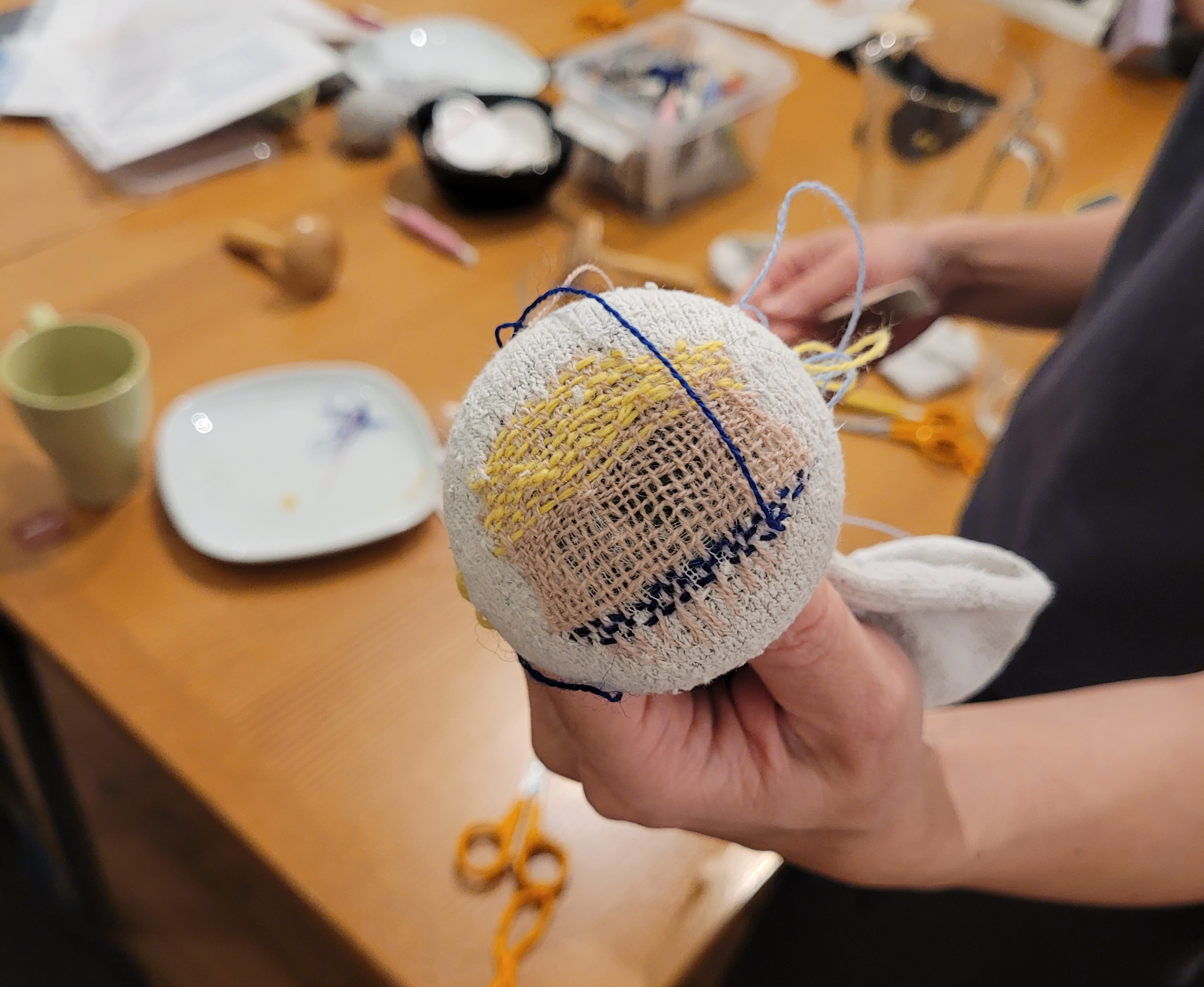 Vi går under en workshop igenom hur man enkelt kan reparera med vävstoppning i trasiga plagg. Projektet Konsthantverkliga lagningar tar avstamp i strumpan, där strumpan får symbolisera det vardagliga plagget utan ett andrahandsvärde. Vi har frågat oss, vad ska vi göra med våra kläder när det är billigare att köpa nytt än att reparera? Och, hur kan vi som konsthantverkare inspirera andra att våga ta nålen till hålet och börja laga?